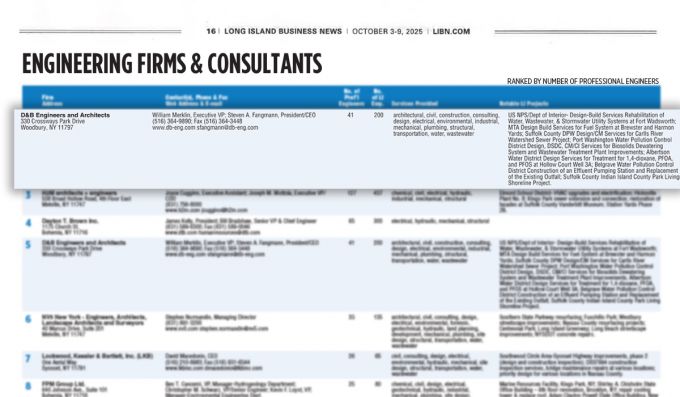 D&B Appears at Top of Long Island Engineering Firms & Consultants List and Architectural Firms List