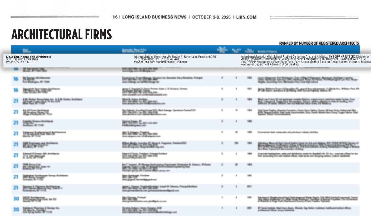 D&B Appears at Top of Long Island Engineering Firms & Consultants List and Architectural Firms List