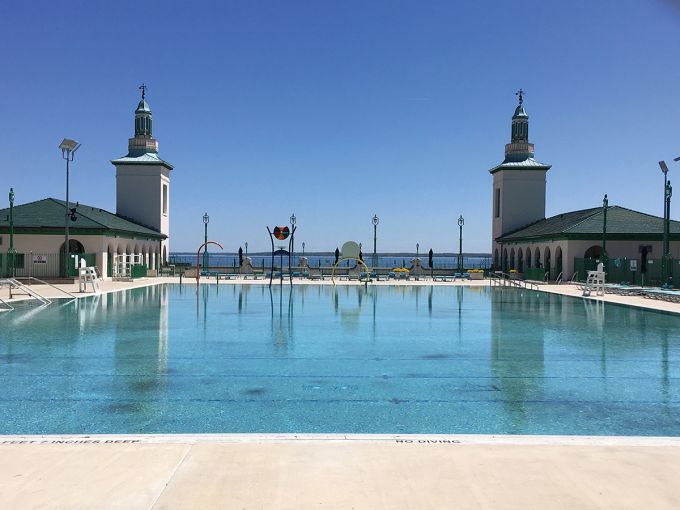Completing extensive renovations while preserving the historic features of the property was a complex challenge. Compounding this difficulty, the surrounding park, beach and boardwalk were required to remain open during construction, necessitating careful planning to minimize any impact on visitors. Demolishing the old pool and preparing the site for the new pile-supported pool system was complicated by the unexpected presence of substantial natural bedrock and construction debris, necessitating extensive excavation. Furthermore, several design modifications were implemented after a new management company took over operation midway through the project. In addition, Bathhouse interior renovations were met with numerous, unforeseen conditions which required significant coordination efforts.
