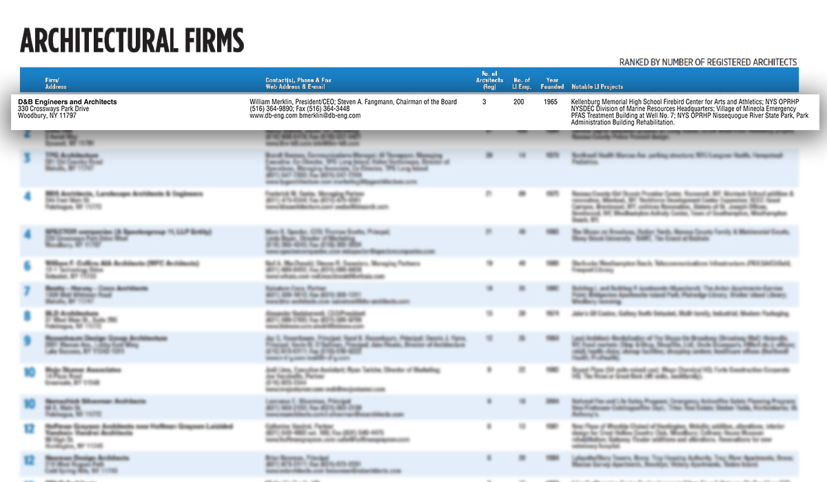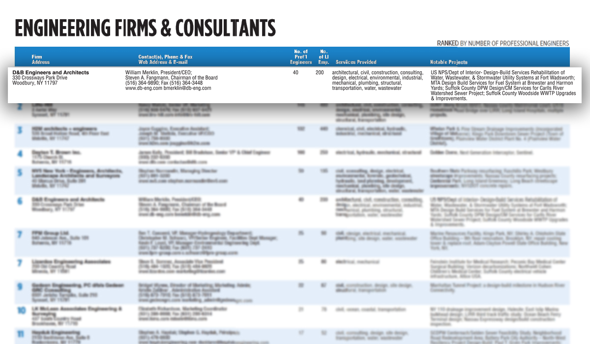 D&B Engineers and Architects is proud to be recognized in the March 13, 2026 issue of Long Island Business News as one of Long Island’s top firms in both engineering and architecture.