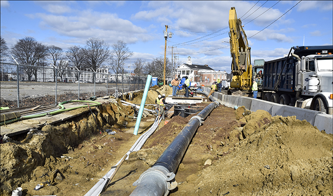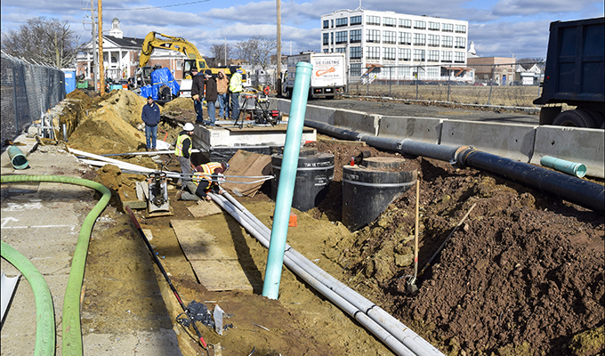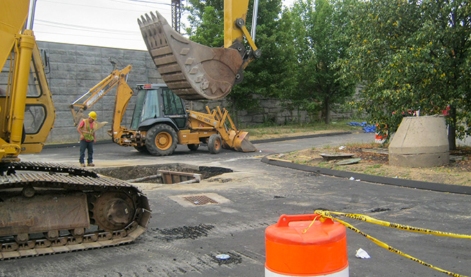 A cured-in-place pipe lining system was recommended to enhance future integrity and eliminate groundwater infiltration, while the installation of a shallow stormwater drainage system parallels the existing combined sewers and collects roadway runoff from street catch basins. The storm sewer system connects into existing drainage lines that currently transport stormwater to area outfalls and, where the new system connects into existing outfalls, individual stormwater treatment systems were installed to remove debris and floatables prior to discharge.