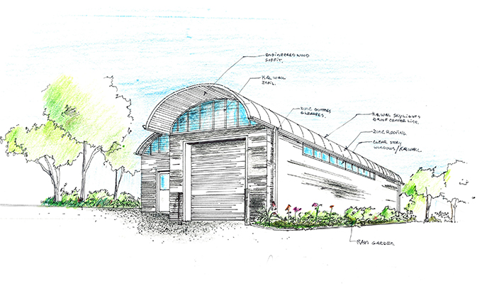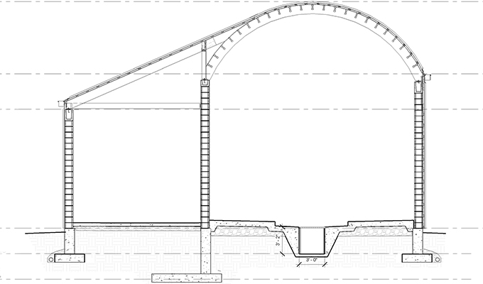 The system is designed to treat up to 25 10-wheel dump trucks and smaller vehicles each day and combines the programmatic demands of a municipal truck wash facility with a modern building aesthetic. Because the interior of the building will be a harsh environment for building materials, the amount of structural steel was minimized, and pressure-treated glulam was utilized for the barrel-vaulted roof. The roof structure will promote drying by eliminating the possibility of water being trapped on flat portions of the structure commonly seen with other roof forms. Condensation occurring in the wall cavities was mitigated by applying the insulation to the outside via the use of a vented rain screens, which creates a superior weather barrier system and adds significant R-value.